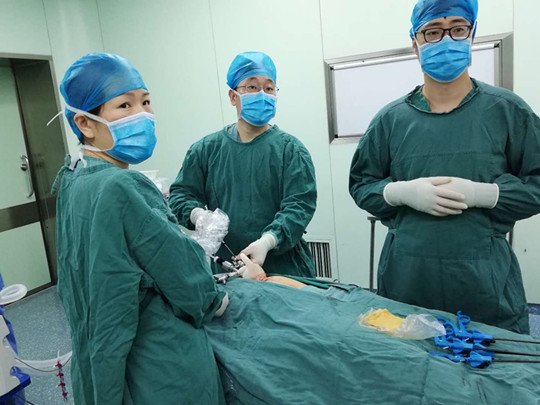 马女士得了宫外孕,住进了我院妇产科二病区。马女士的宫外孕已经可以看到胎心搏动,没有办法用药物保守治疗。宫外孕如果破裂会引起大出血,严重的能够危及生命,所以必须要尽早手术治疗。但这位马女士特别爱美,怕手术切口大影响美观。妇产科二病区主任季印华考虑到患者的感受,对患者实施了自制单孔腹腔镜手术,术后患者非常满意,一个神奇的“小洞”就完成了手术。
