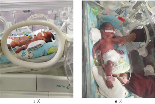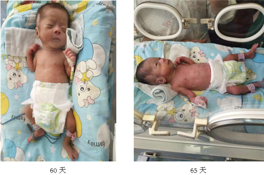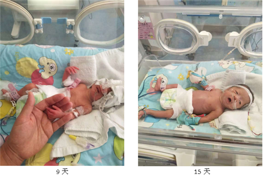 这个生命危弱的小家伙,刚一出生就面临着极大的生存挑战:肺透明膜病、极早早产儿、超低出生体重儿、凝血障碍、代谢紊乱…… 针对宝宝的病情,新生儿科成立了救治小组,制定详细的治疗和护理方案:24小时专人护理、多功能监护、呼吸支持、肺表面活性物质气管内滴入、维持循环、补充凝血因子、全静脉营养输入等。经过反复多次的抢救,经过精心的护理,患儿的呼吸渐趋平稳,可自主呼吸,撤离呼吸机并逐渐停止吸氧。