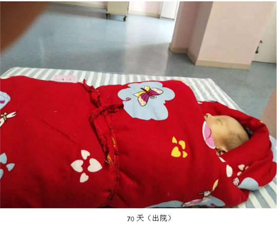 一名胎龄26周,体重0.95kg的极早产儿,经过我院新生儿科的全力救治和精心护理,体重增长到了2.35kg,11月25日出院了。