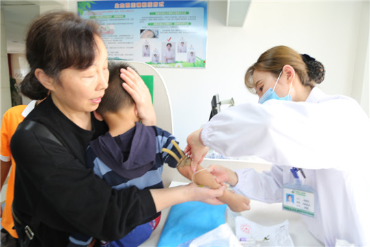 9月28日,我院健康体检中心迎来一群特殊的小朋友,他们是沭阳县沭城街道社会福利院的孩子。为了这群孩子的出行安全,健康管理中心主任史玉平安排医院大巴车负责专车接送。为减少孩子们抽血的恐惧感,体检中心的工作人员特意为孩子们准备了小国旗和气球。同时准备了儿童专用采血窗口,针对不同年龄阶段,为其测量体内微量元素、肝功能、视力、色觉、声导抗等项目,并给予健康指导。