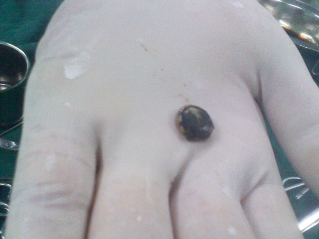 小哲到医院时,已是下午1时了,耳鼻喉科以“右侧鼻腔异物”收治小哲入院。在给小哲检查鼻腔时,小哲一直反抗不配合,好不容易医生发现她右侧鼻腔有明显的血性分泌物粘附,但是看不见异物。考虑再三后,医生认为需尽快在全麻下进行鼻腔异物取出手术。7月17日,在耳鼻喉主任李强主刀下,半个小时异物取出来了,真是一颗玩具电子,直径大约8毫米。但小哲的下鼻甲、鼻底部及鼻中隔面明显已烧伤,粘膜均已化脓。