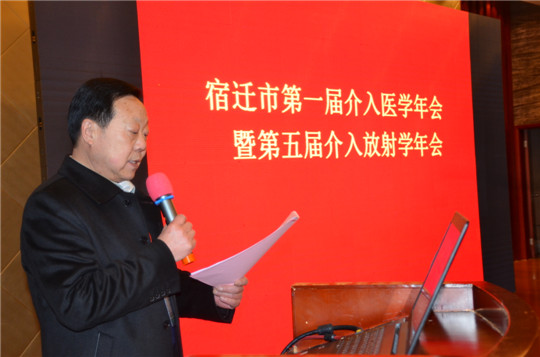开幕式由宿迁介入医学主任委员、我院介入科主任王建国主持,宿迁市医学会秘书长徐彬、江苏省介入医学主任委员南京市第一人民医院介入科主任顾建平教授、我院院长助理陈孝东分别为大会致辞。