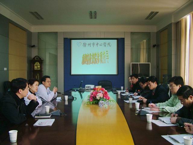 在听取了徐州市中心医院全面介绍后,我院领导与徐州市中心医院领导就医院管理、学科建设、绩效考核、药品招标等方面问题进行探讨与交流。并参观了该院手术室、血透室、供应室、门诊、药房等科室。(营销科)