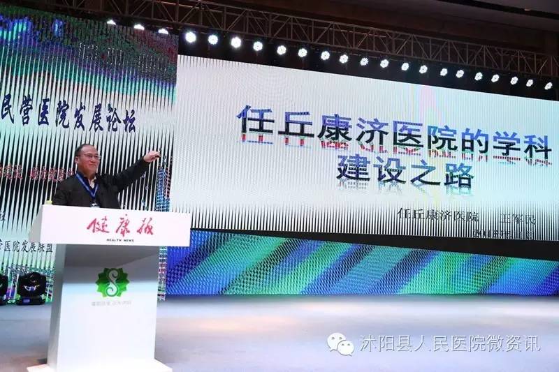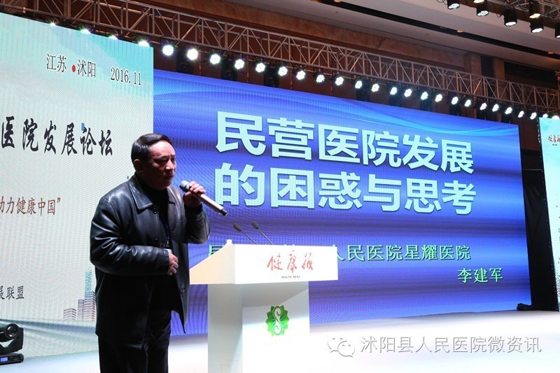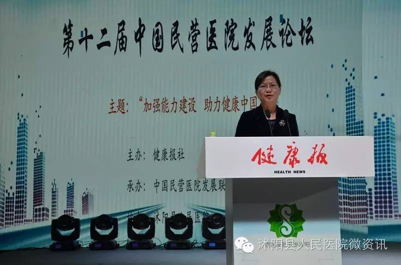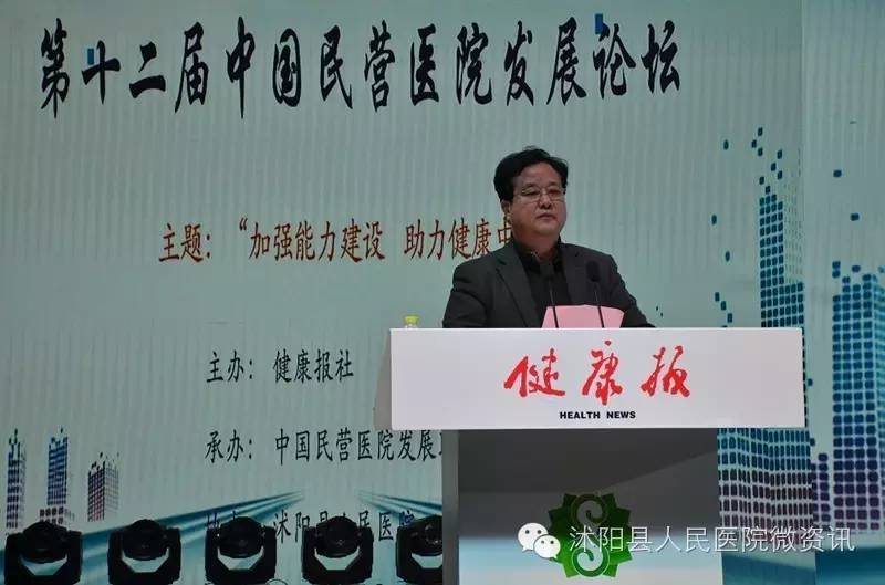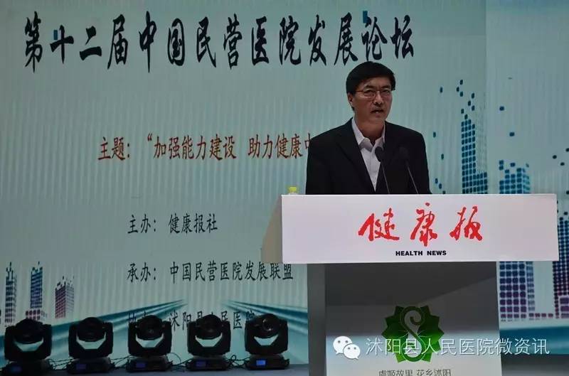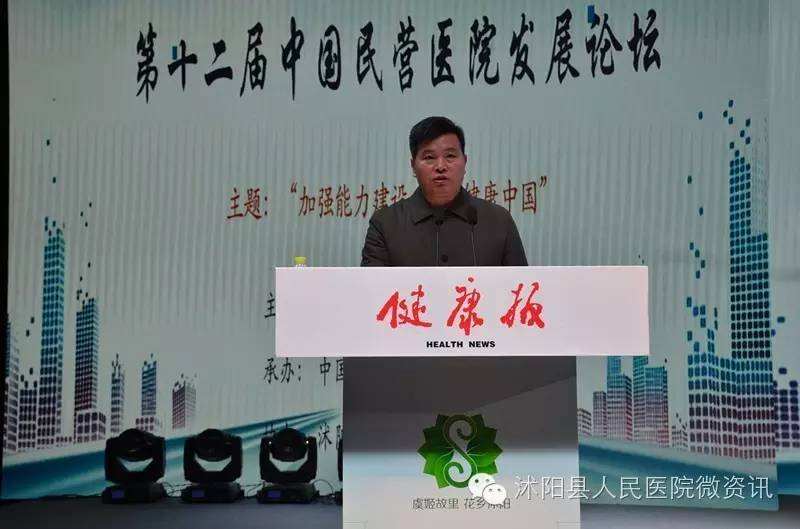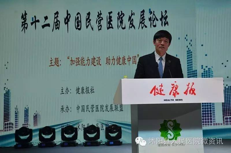 11月23日,由健康报主办我院协办的第十二届中国民营医院发展论坛在沭阳盛大召开。出席本次会议的领导和嘉宾有原卫生部副部长、中国民营医院发展联盟主席殷大奎、国家卫生计生委医政医管局局长张宗久、健康报社社长、党委书记邓海华、对外经贸大学教授于保荣、江苏省卫生计生委副巡视员洪浩、宿迁市副市长赵丽丽、党委书记刘仰刚、沭阳县委副书记、县长卞建军、宿迁市卫生计生委主任、沭阳县人民医院院长、党委书记周业庭、健康报社健康运营中心主任、中国民营医院发展联盟秘书长李仁丰,参加本次会议的还有来自五湖四海的各民营医院代表,600余人相聚共同探讨民营医院的发展。